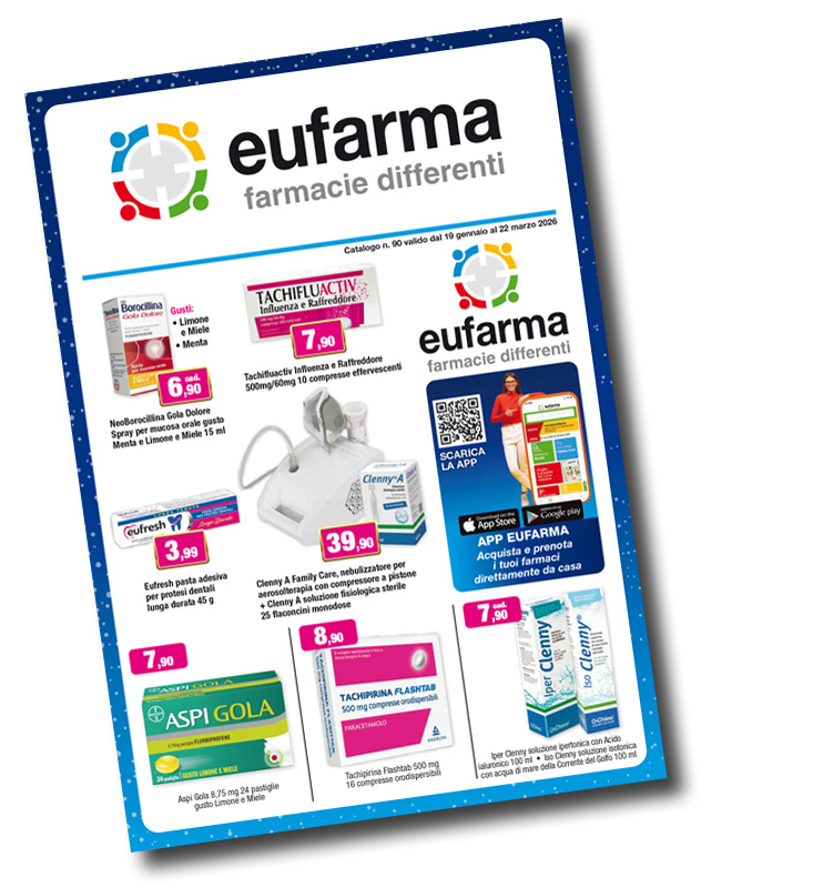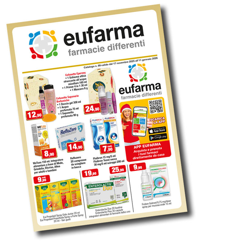 Scopri promozioni Eufarma sfogliando il volantino in basso oppure sull’App Eufarma.